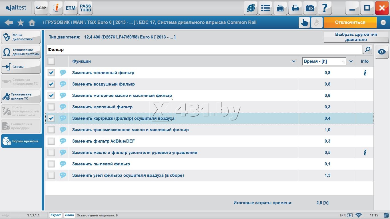 Функциональные возможности Jaltest LTL RUS (ETM Version):