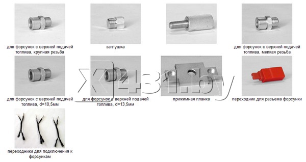 Комплект адаптеров для подключения форсунок с боковой подачей топлива.